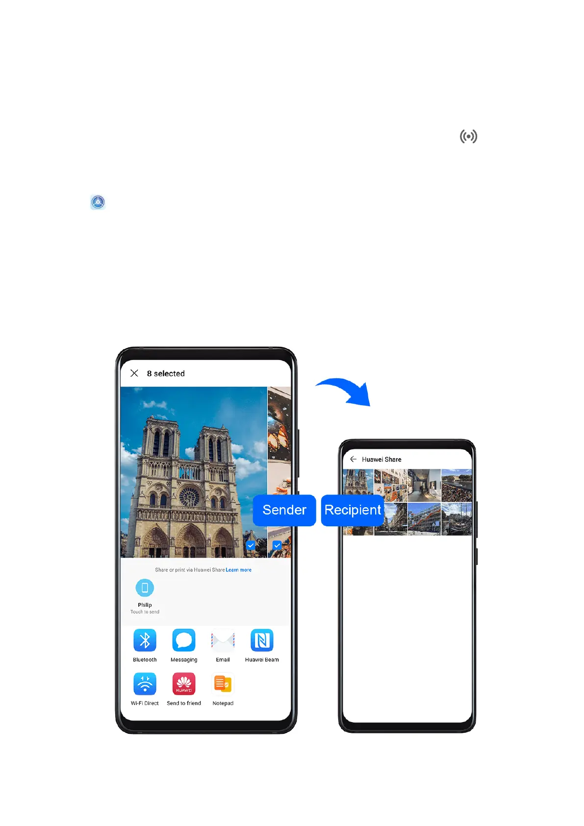 Enabling Huawei Share automatically turns on Wi-Fi and Bluetooth.