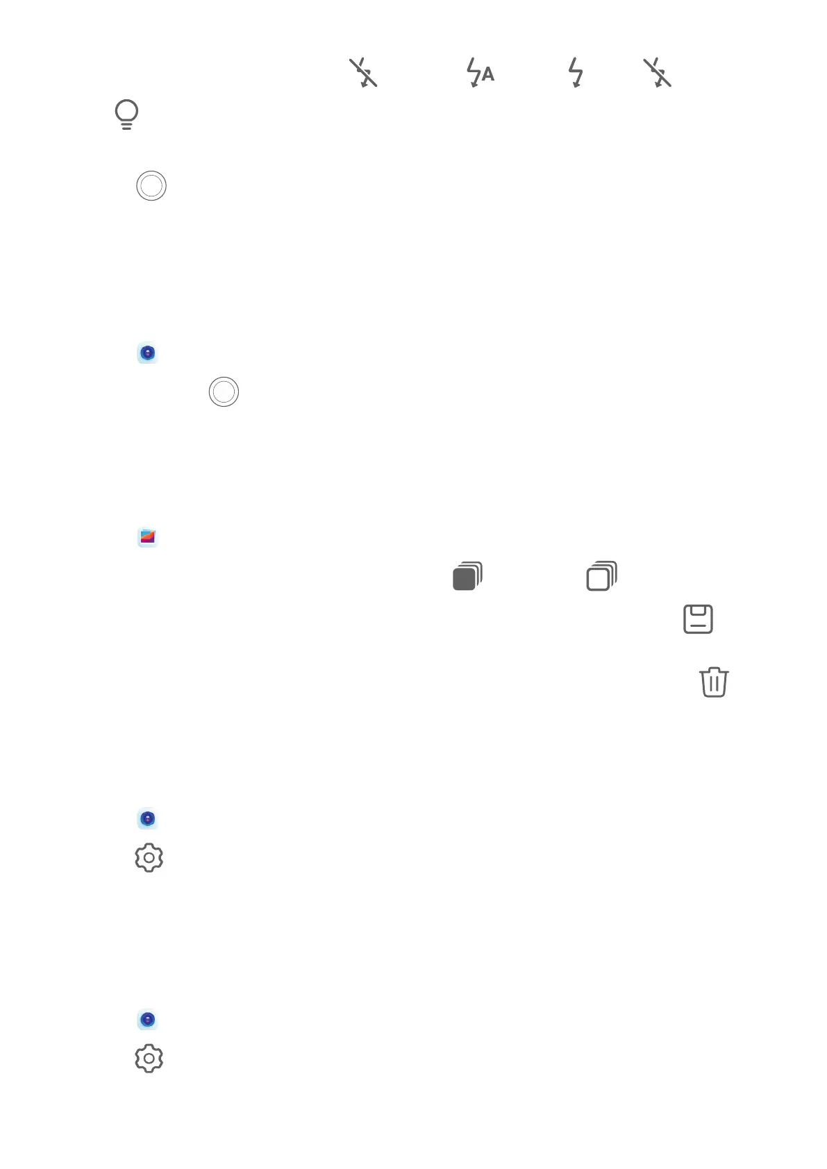 • Turn the ash on or o: Touch and select (Auto), (On), (O), or