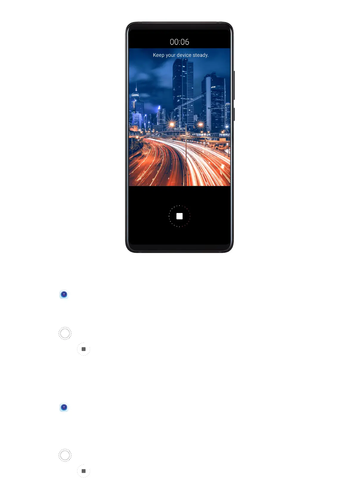 3 Touch to start shooting. Observe the shot in the viewnder. When the exposure is just