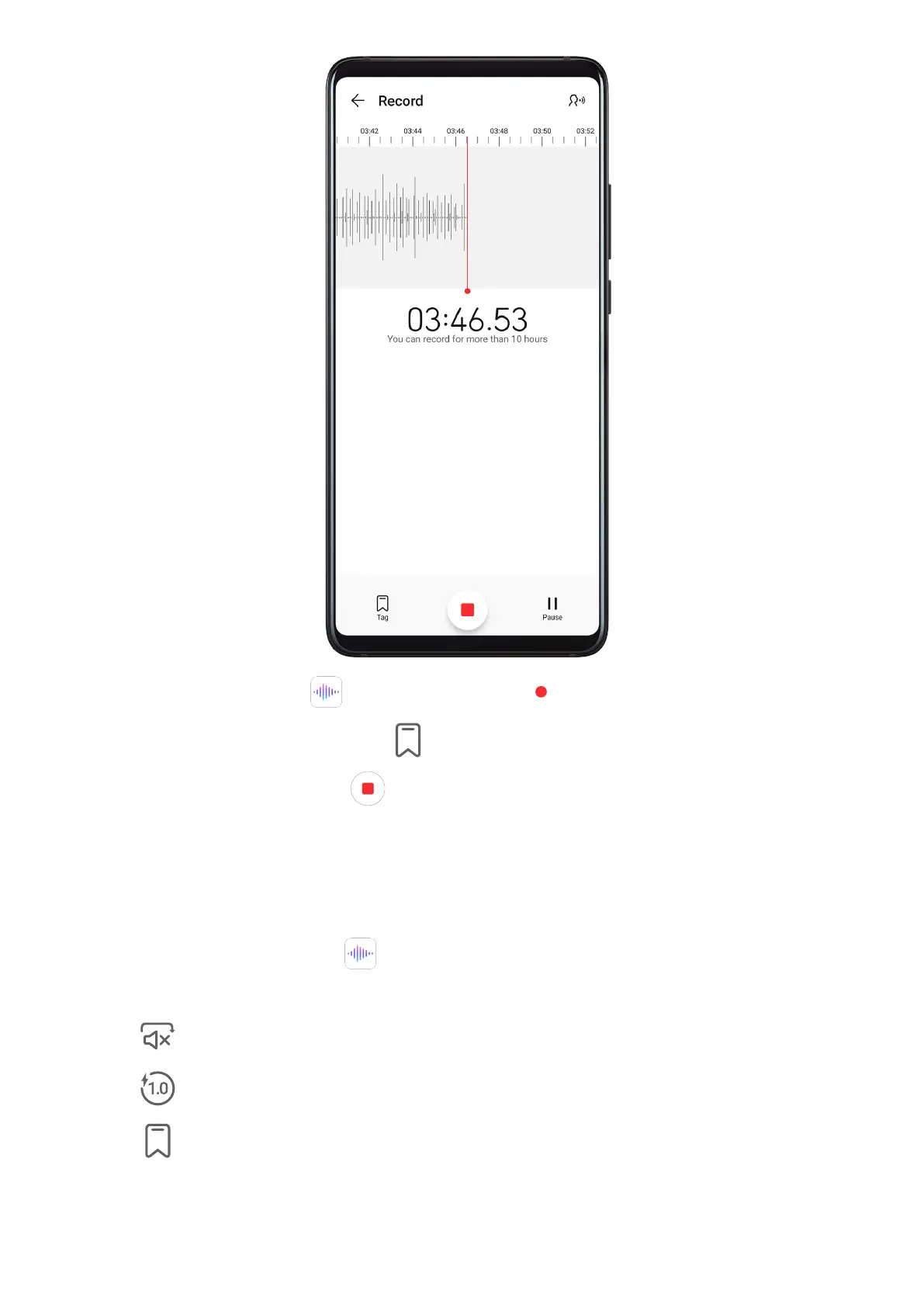 1 In the Tools folder, open Recorder, and touch to start a recording.