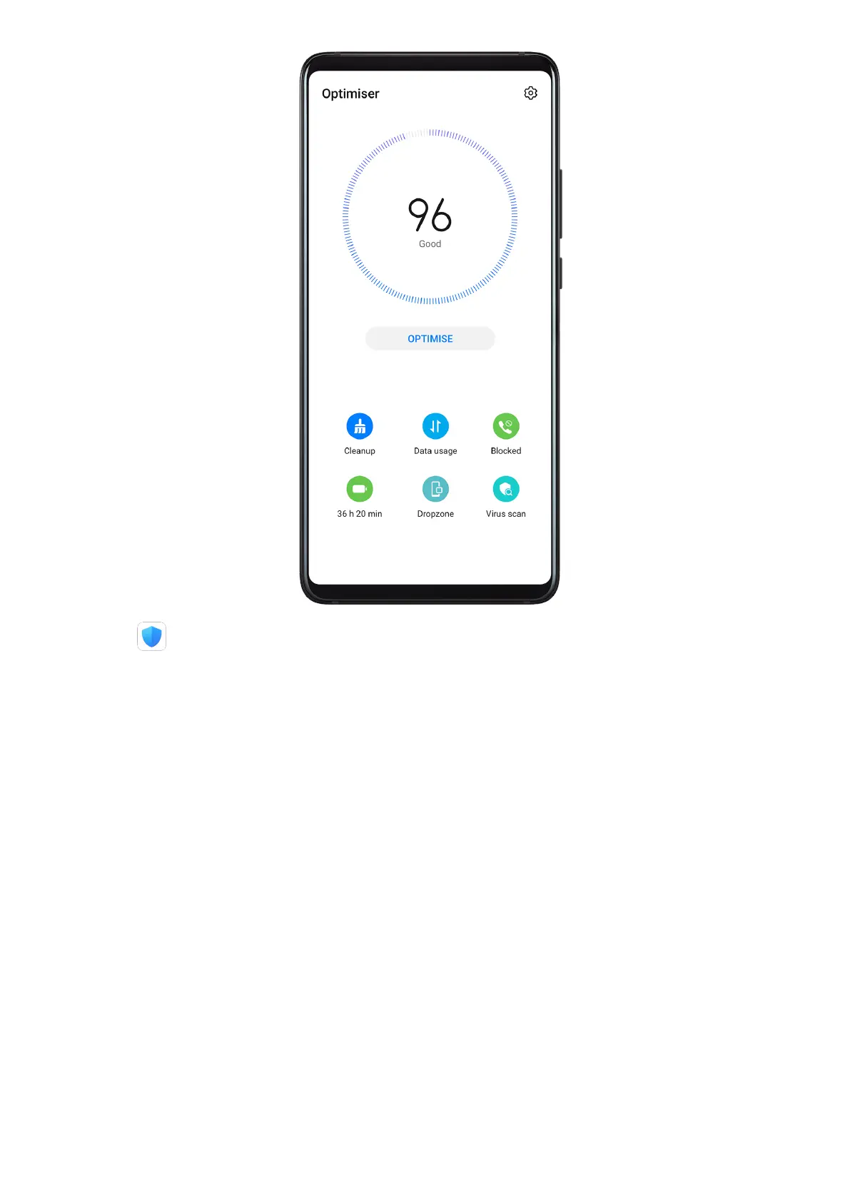 1 Open Optimiser and touch OPTIMISE.