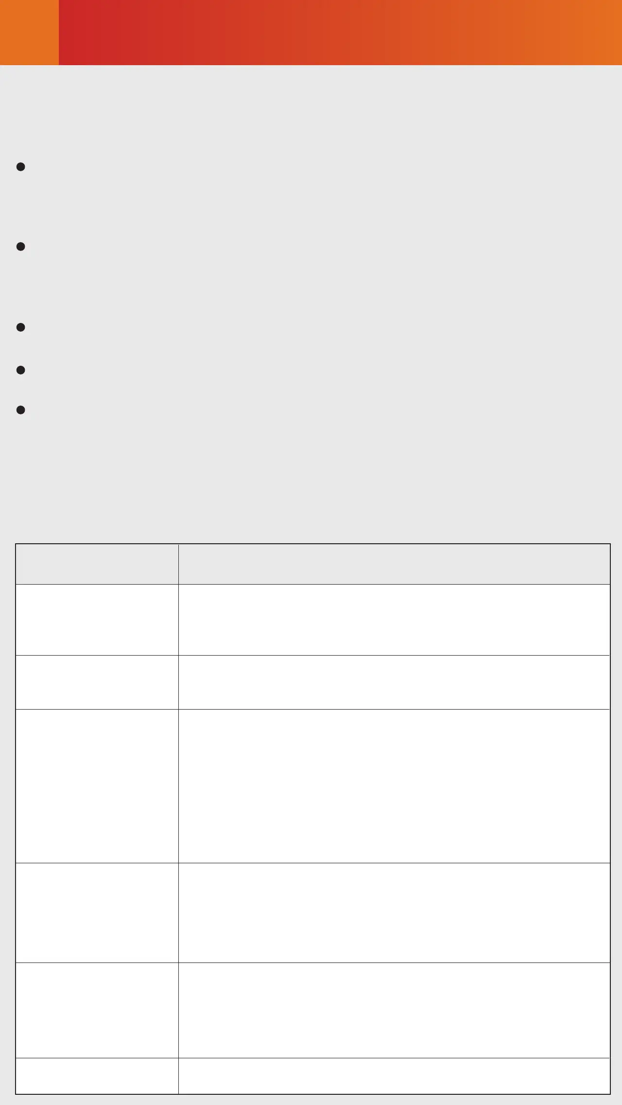 requirements described in the following table.