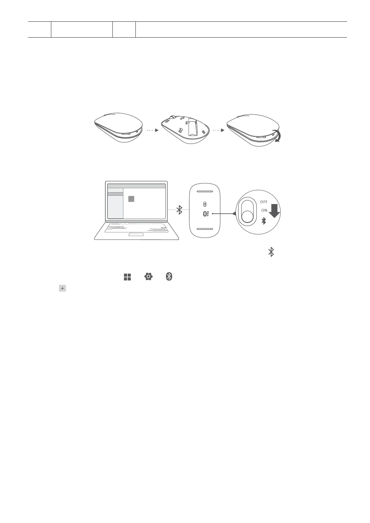 1 Toggle the Bluetooth pairing switch at the bottom of the mouse to for approximately 3