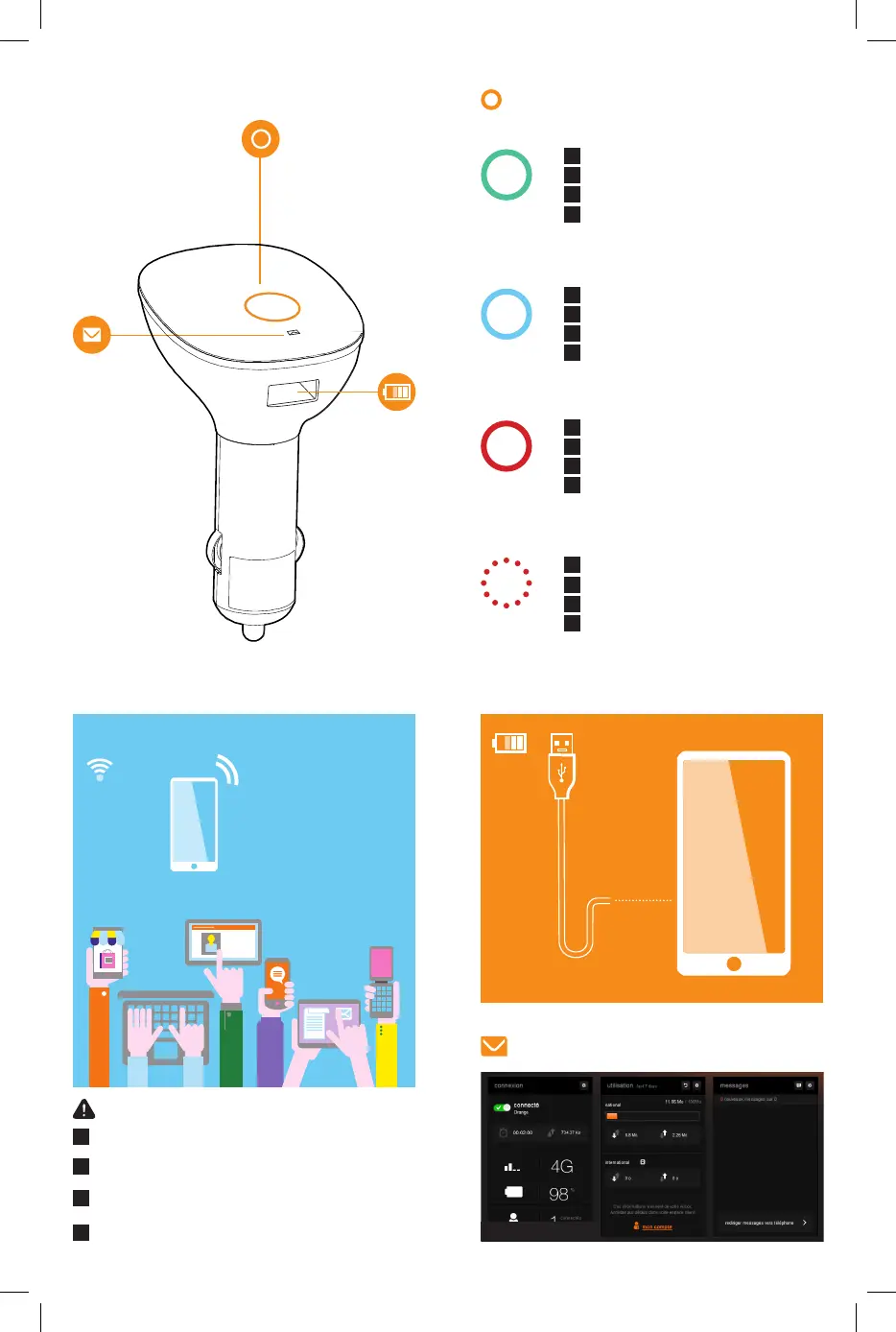 Rouge (clignotant) : connexion en cours
