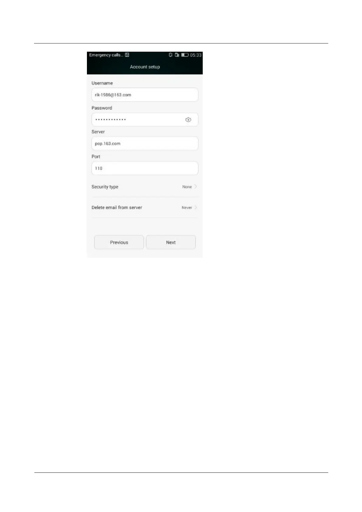 4. Touch Next to configure the outgoing server settings.