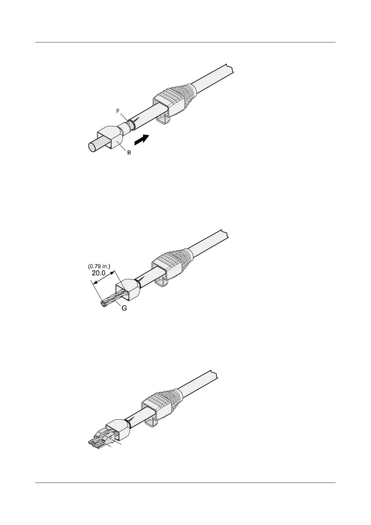 is no surplus copper wire. The exposed twisted-pair cable is about 20 mm (0.79 in.) long, as