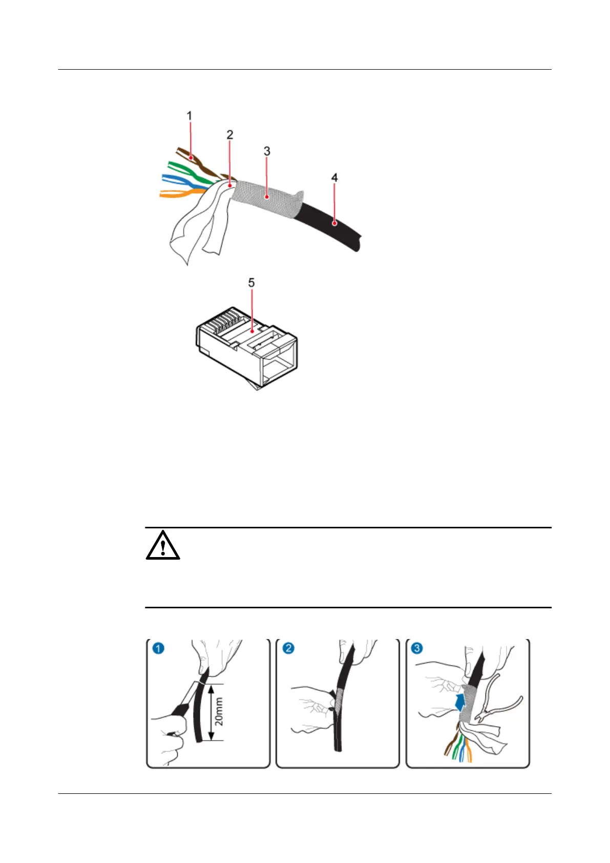 Step 1 Strip 20 mm outer jacket off the network cable, peel off the braid shield backward, and cut off