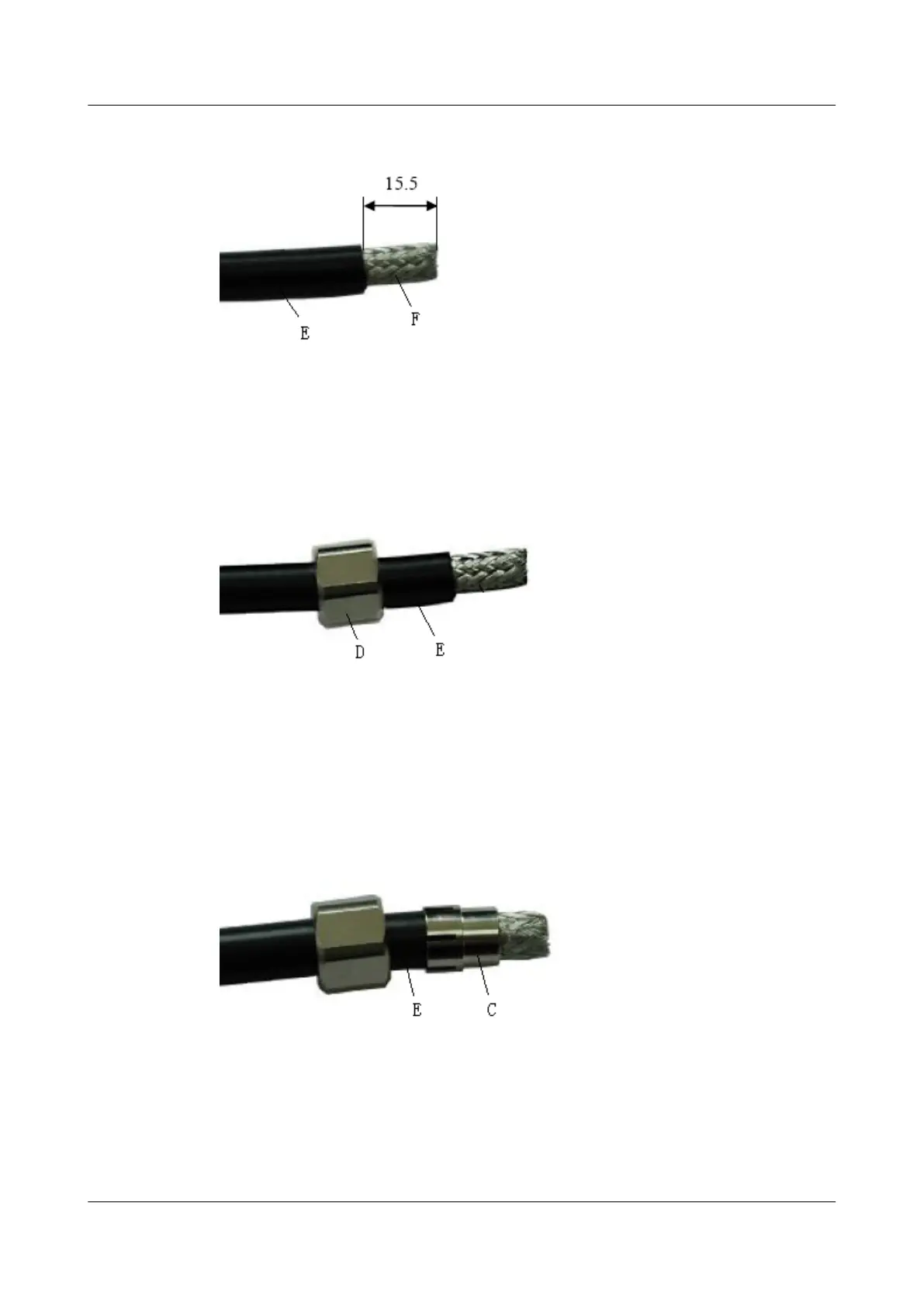 Step 3 Install the clip (C) on the Cable jacket (E) and move the clip until the clip is close to the Cable