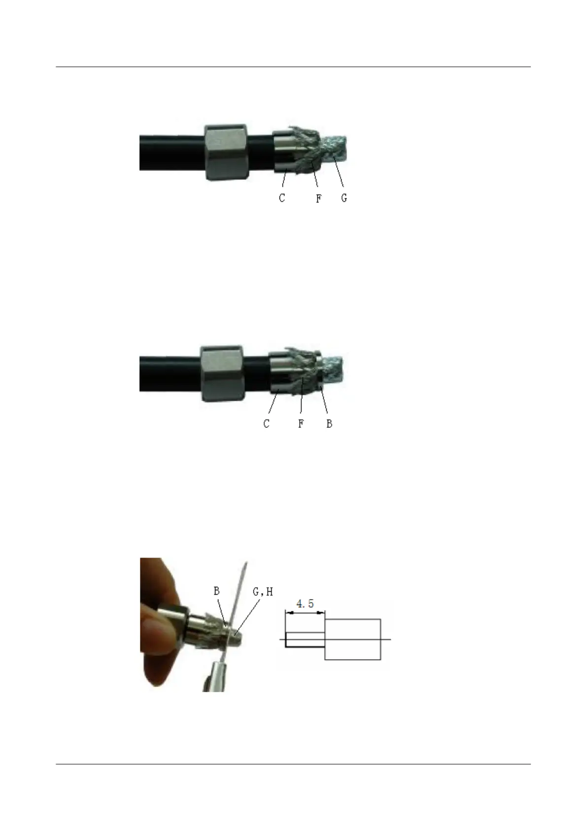 Step 5 Install the lining (B) on the feeder and tightly crimp the shielded layer (F) of the feeder, as