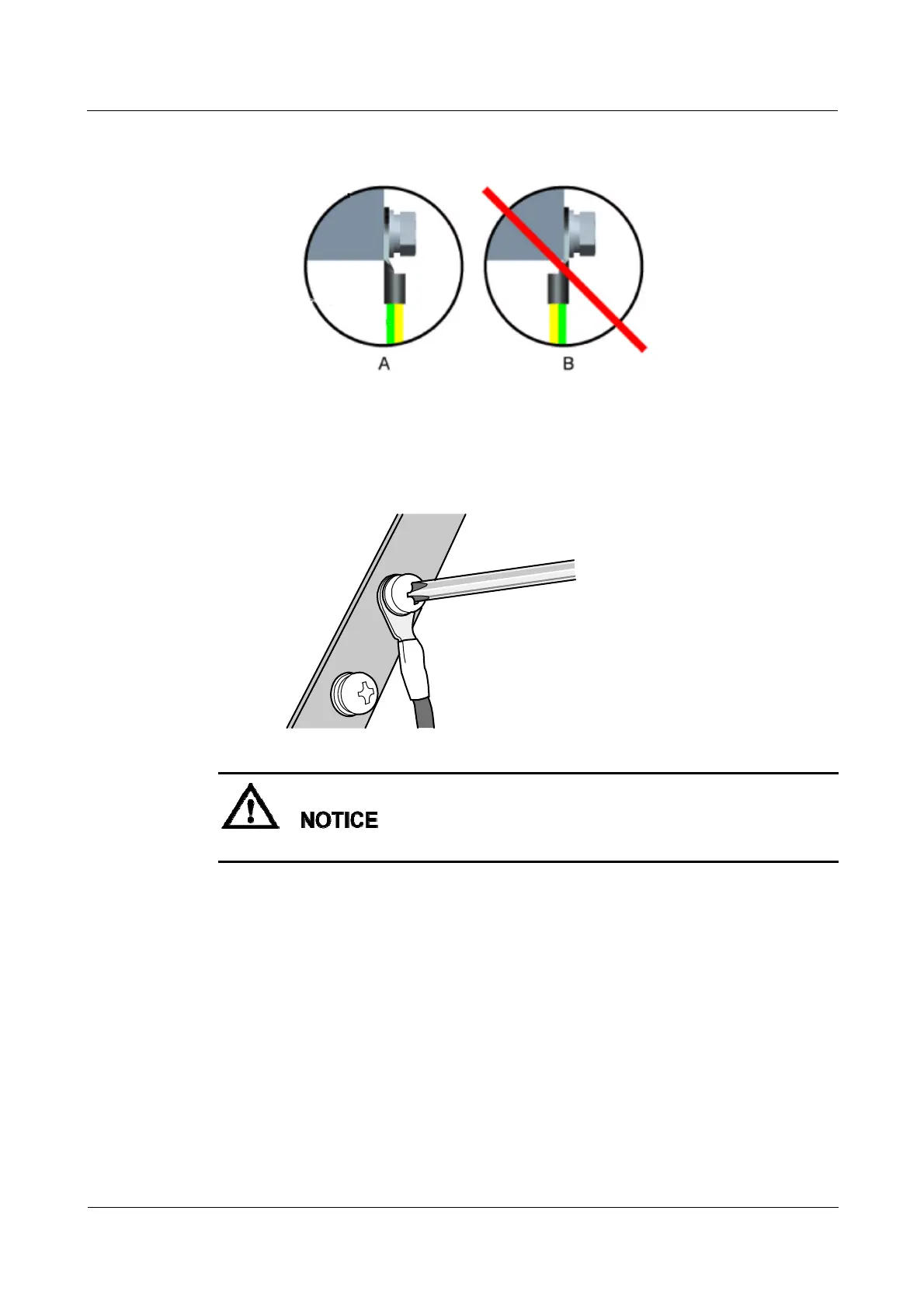 Figure 5-43 Installing an OT terminal, showing the orientation of crimping sleeve