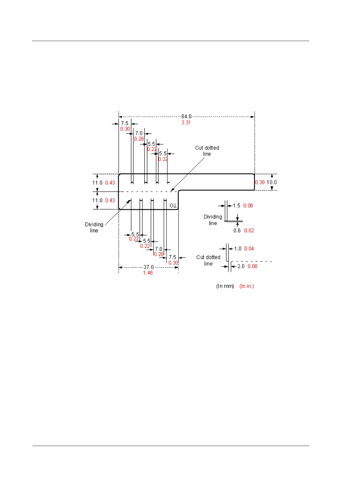 (0.008 in. x 0.02 in.) around (symmetric on both sides), and the area in the middle is for