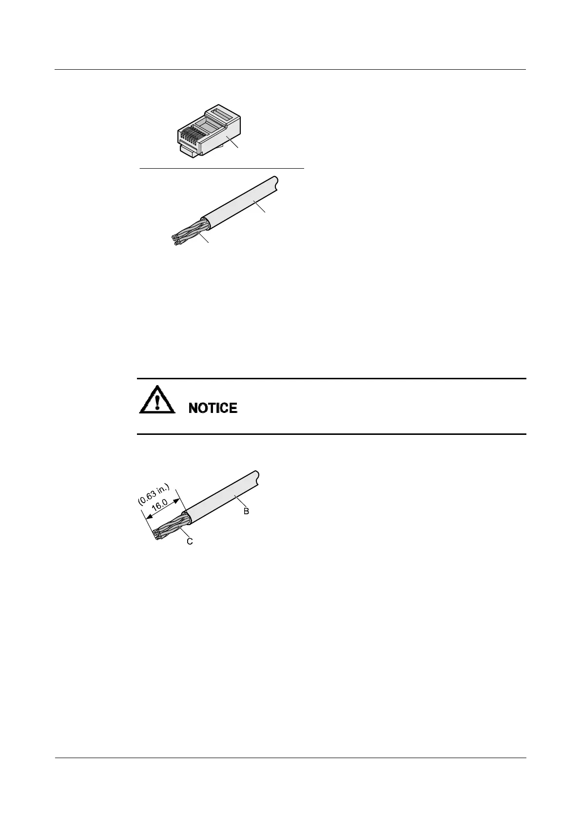 Figure 5-29 Removing the jacket of a twisted-pair cable (unit: mm (in.))
