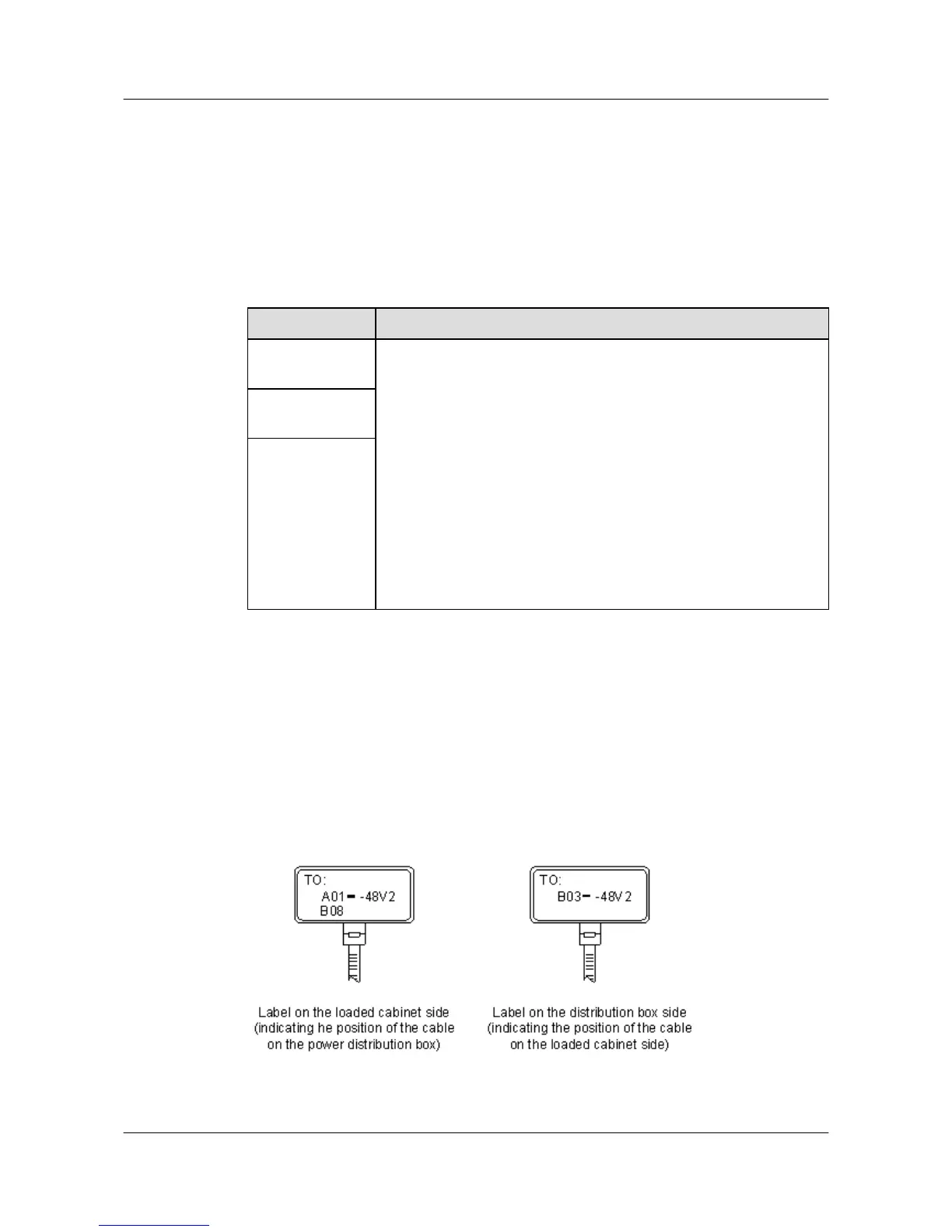 These labels are affixed to the DC power cables that provide power supply for cabinets,