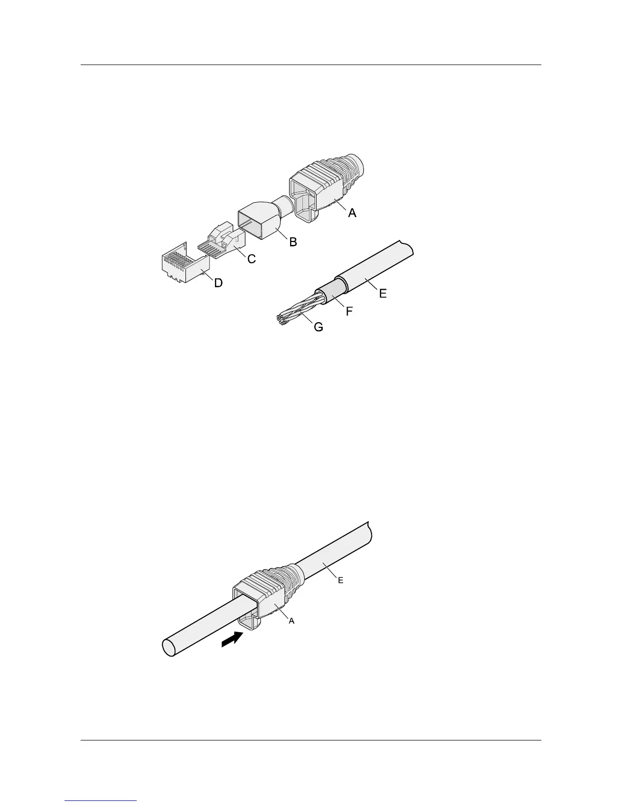 Figure 5-15 shows the components of an RJ45 connector and a shielded Ethernet cable.