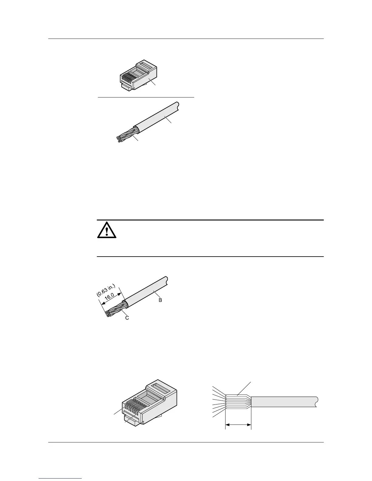 A. Plug of connector B. Jacket C. Twisted-pair wires