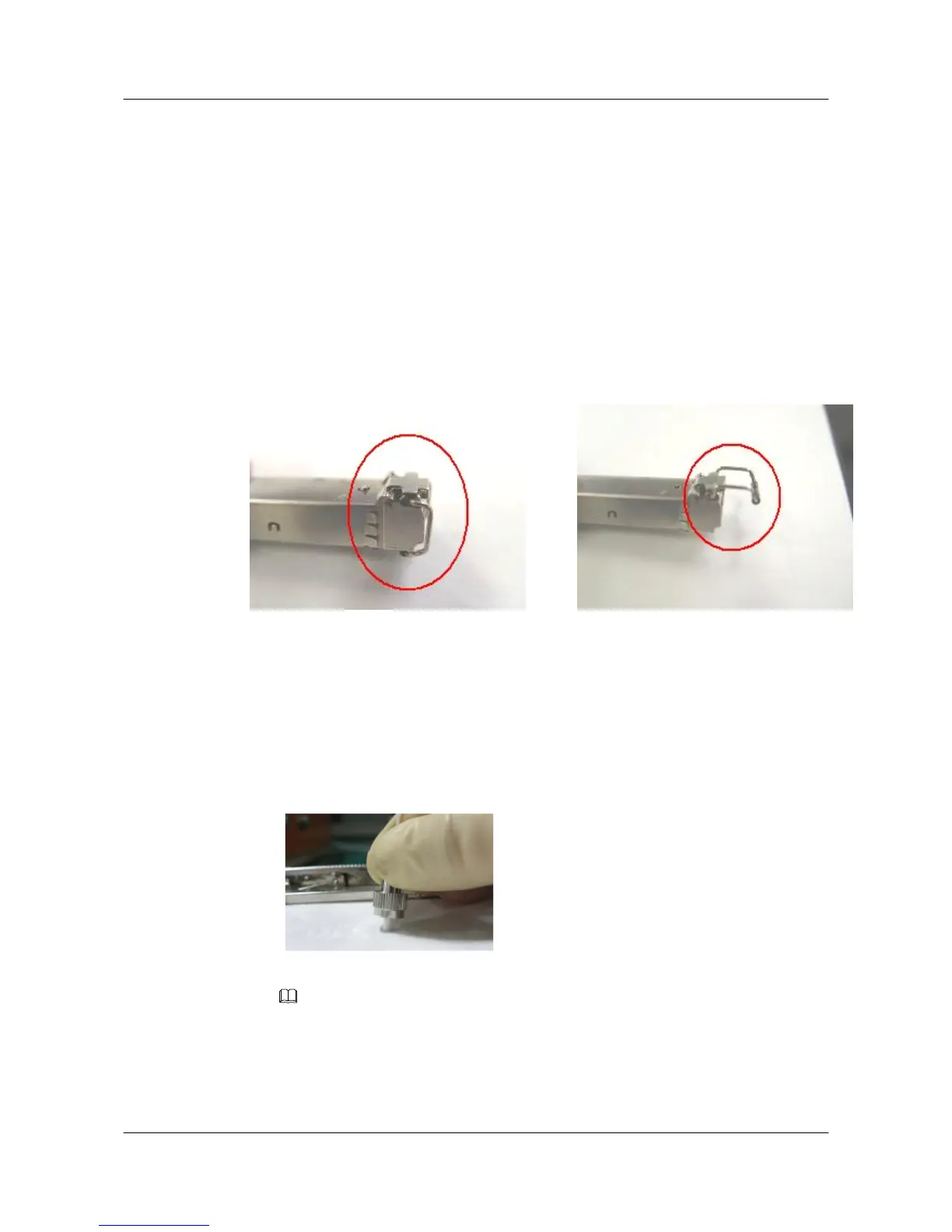 When inserting the optical module, make sure that the release handle is closed. At this time,