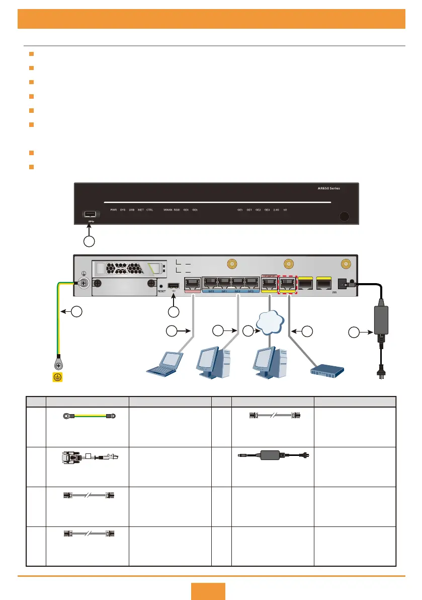 The ground cable of the AR651F-Lite/AR651C router must be routed from the top.