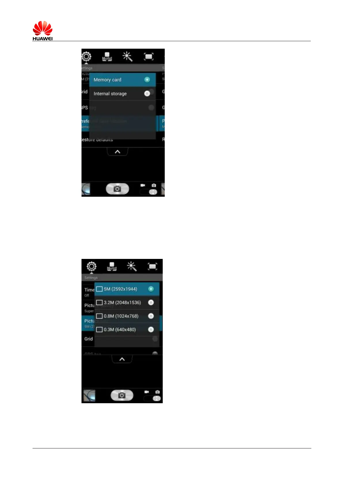 Camera supports the JEPG picture format and the resolutions of 5 megapixels, 3.2 megapixel,