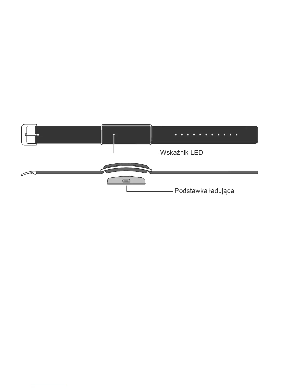 Aby uaktywnić opaskę, należy ją naładować przez podłączenie podstawki do ładowarki