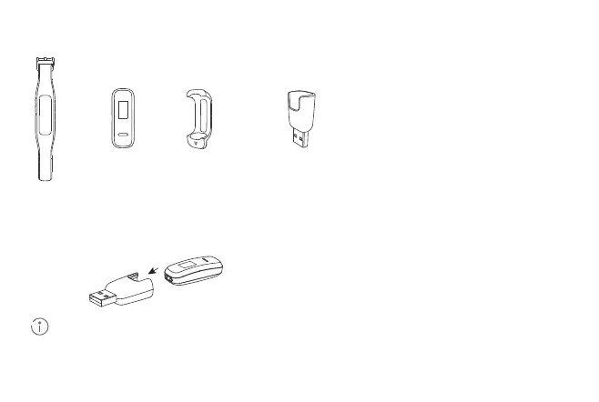 충전 핀을 충전 거치대에 맞추어 밴드를 충전 거치대에 연결합니다 . 배터리 잔량이 스마트 밴드 화면에 표시되고