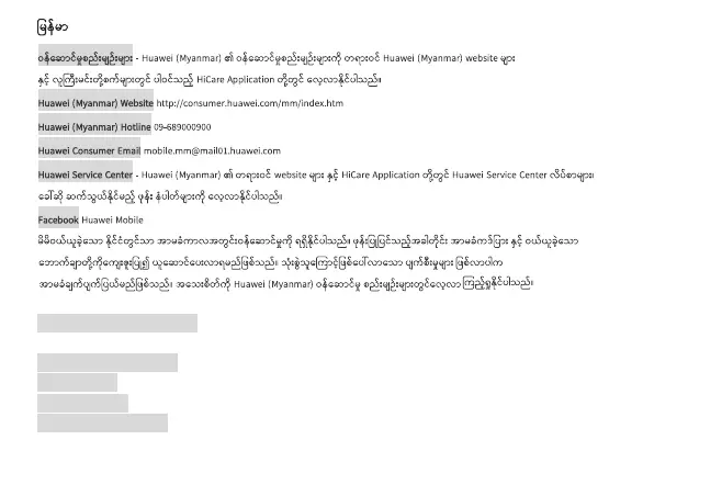 ศูนย์บริการลูกค้าหัวเว่ย: โปรดเยี่ยมชมเว็บไซต์ หัวเว่ยคอนซูมเมอร์ หรือ แอพพลิเคชั่น HiCare เพื่อตรวจสอบข้อมูลที่ตั้ง