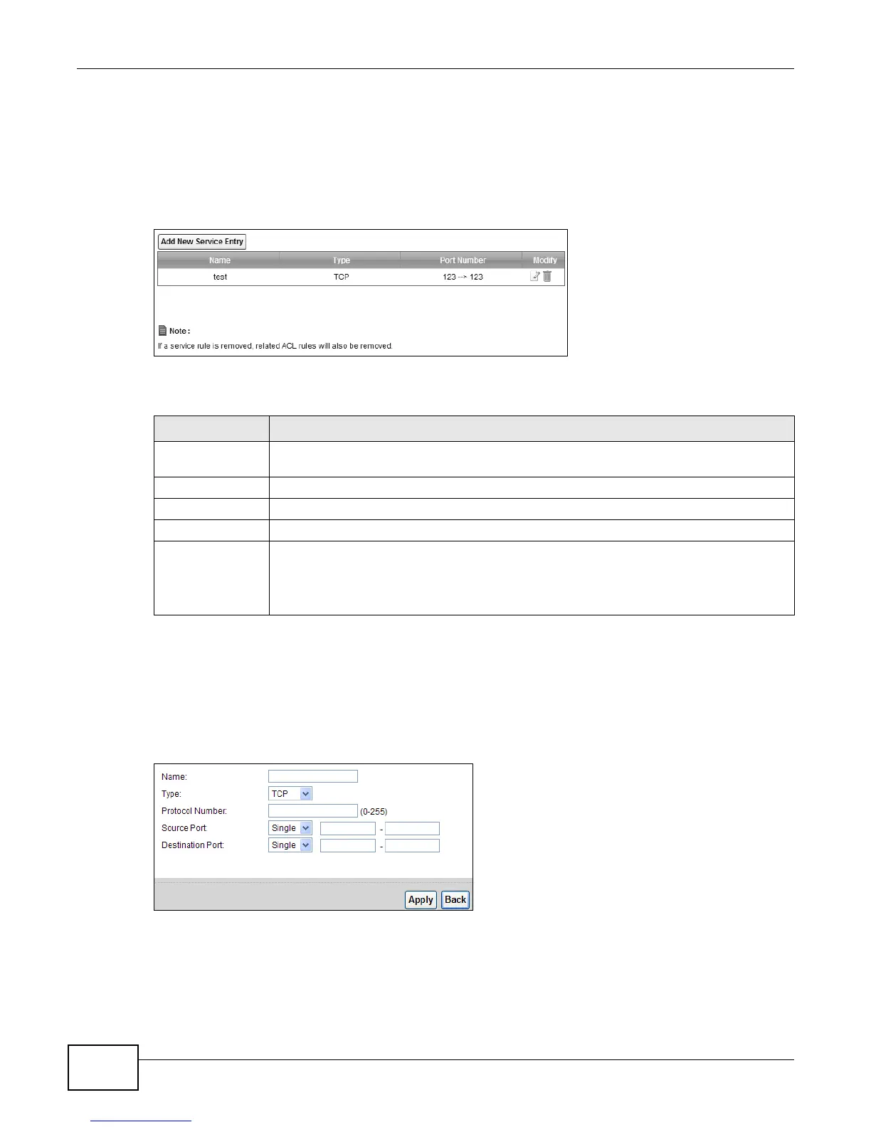 Figure 62 Security > Firewall > Services > Add New Service Entry