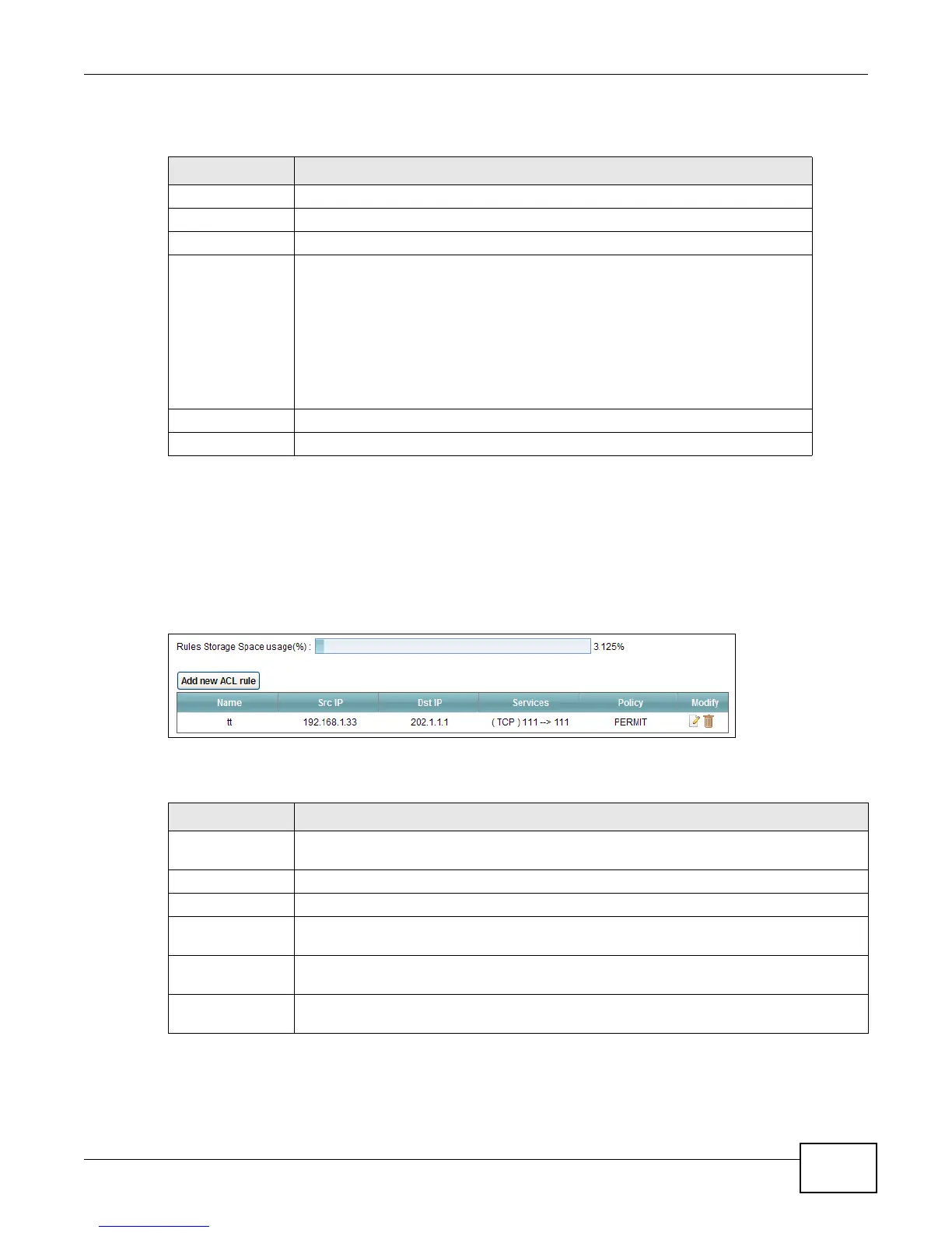 Table 43 Security > Firewall > Access Control