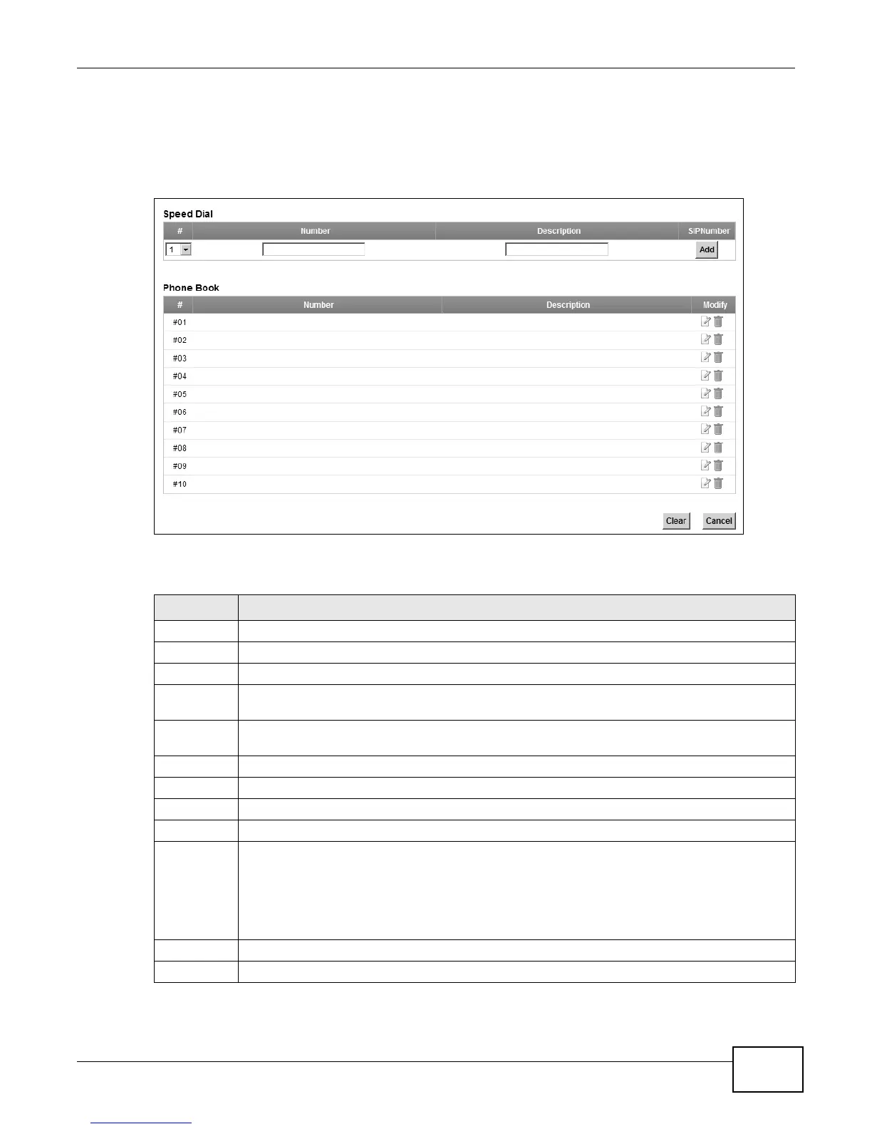 Add Click this to use the information in the Speed Dial section to update the Speed Dial Phone
