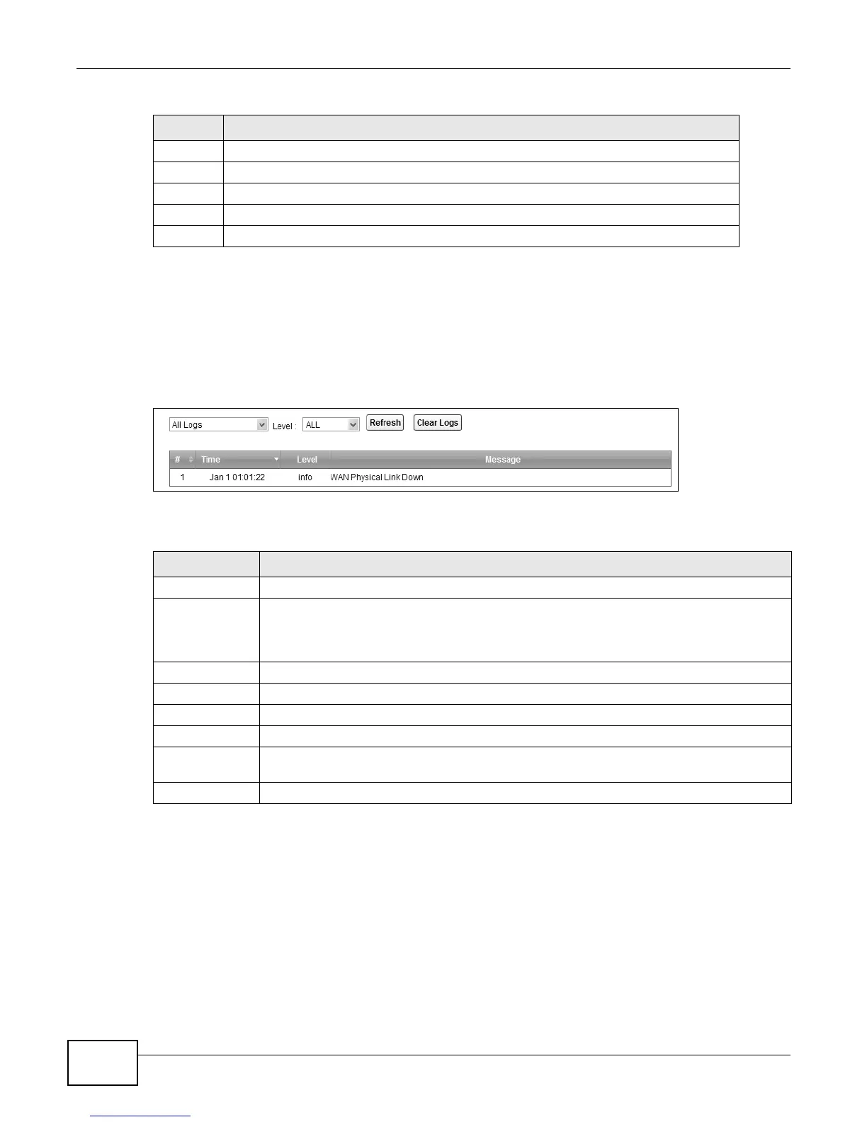 Table 59 System Monitor > Log > System Log