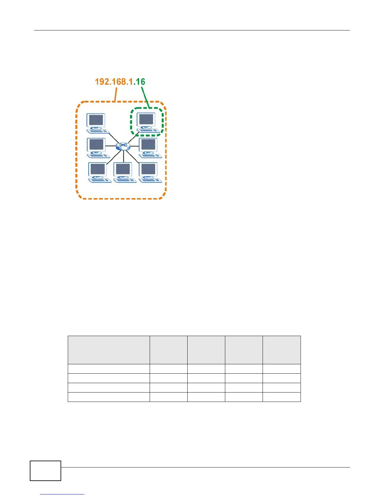 The following figure shows an example IP address in which the first three octets (192.168.1) are