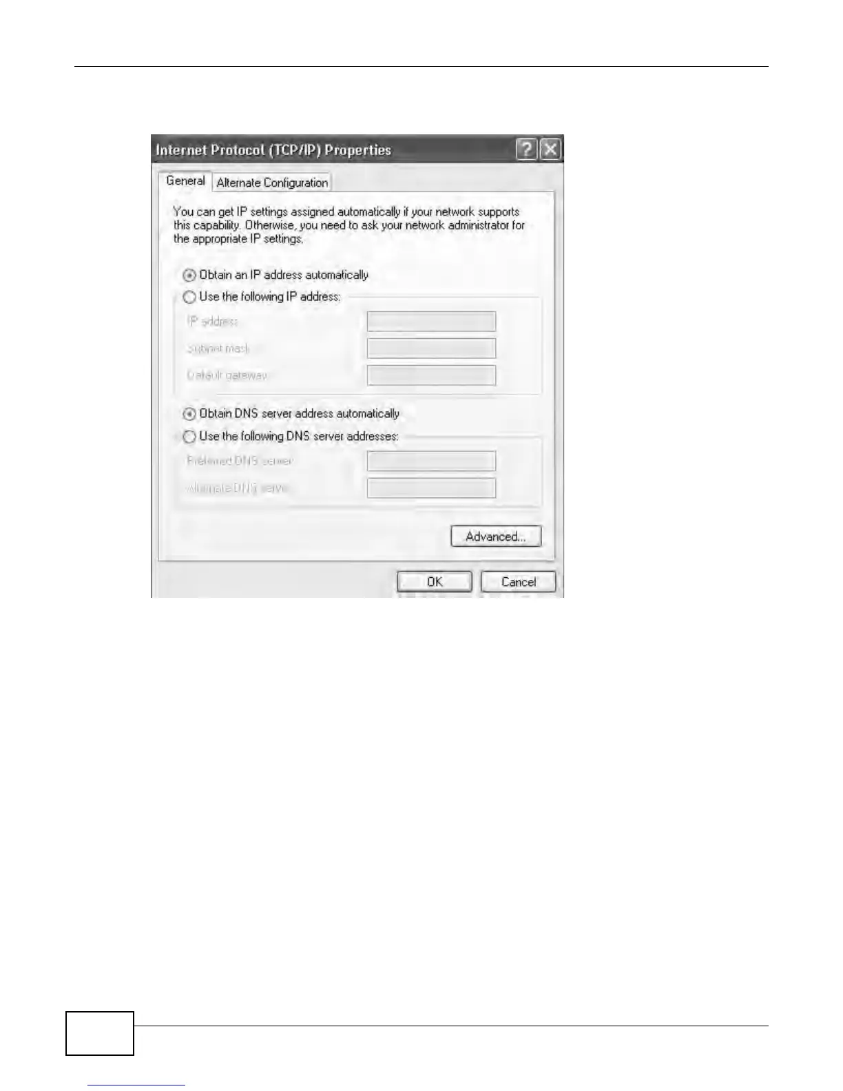 Figure 111 Windows XP: Internet Protocol (TCP/IP) Properties