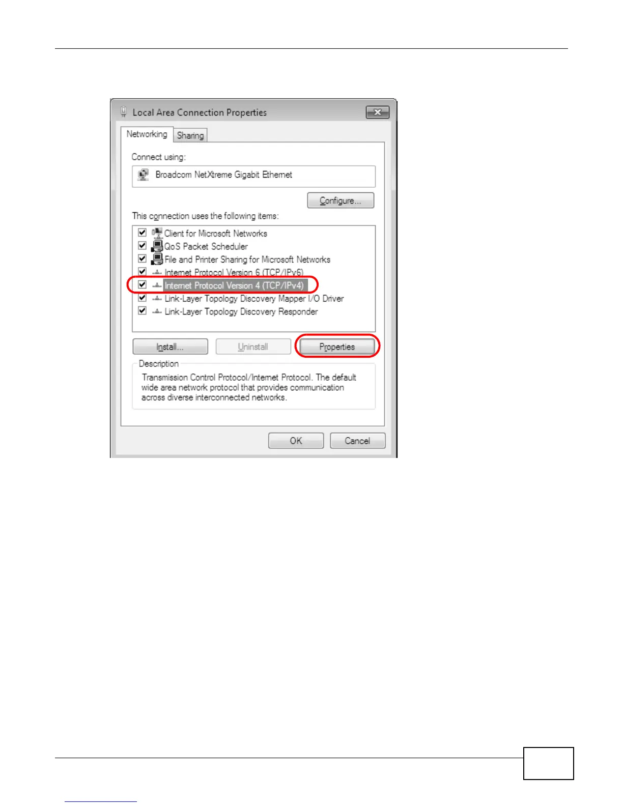 5 Select Internet Protocol Version 4 (TCP/IPv4) and then select Properties.