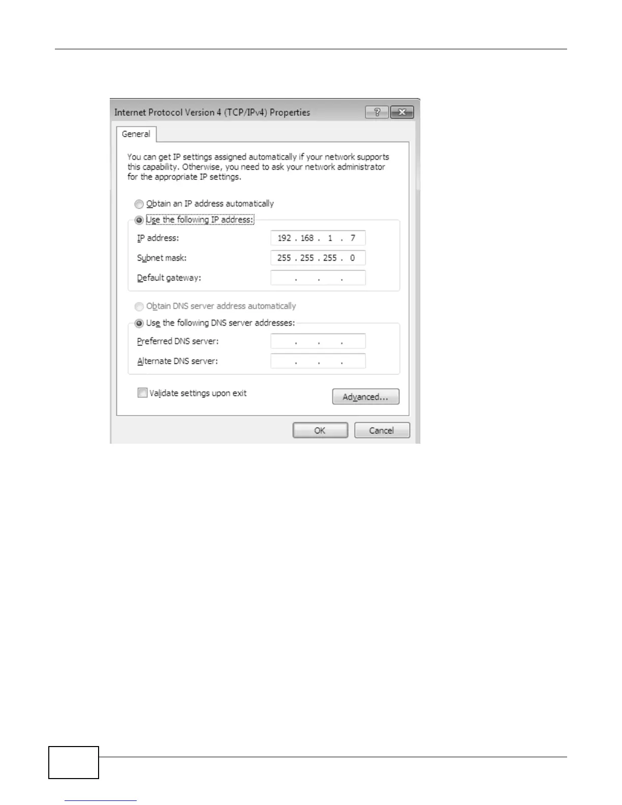 Figure 124 Windows 7: Internet Protocol Version 4 (TCP/IPv4) Properties