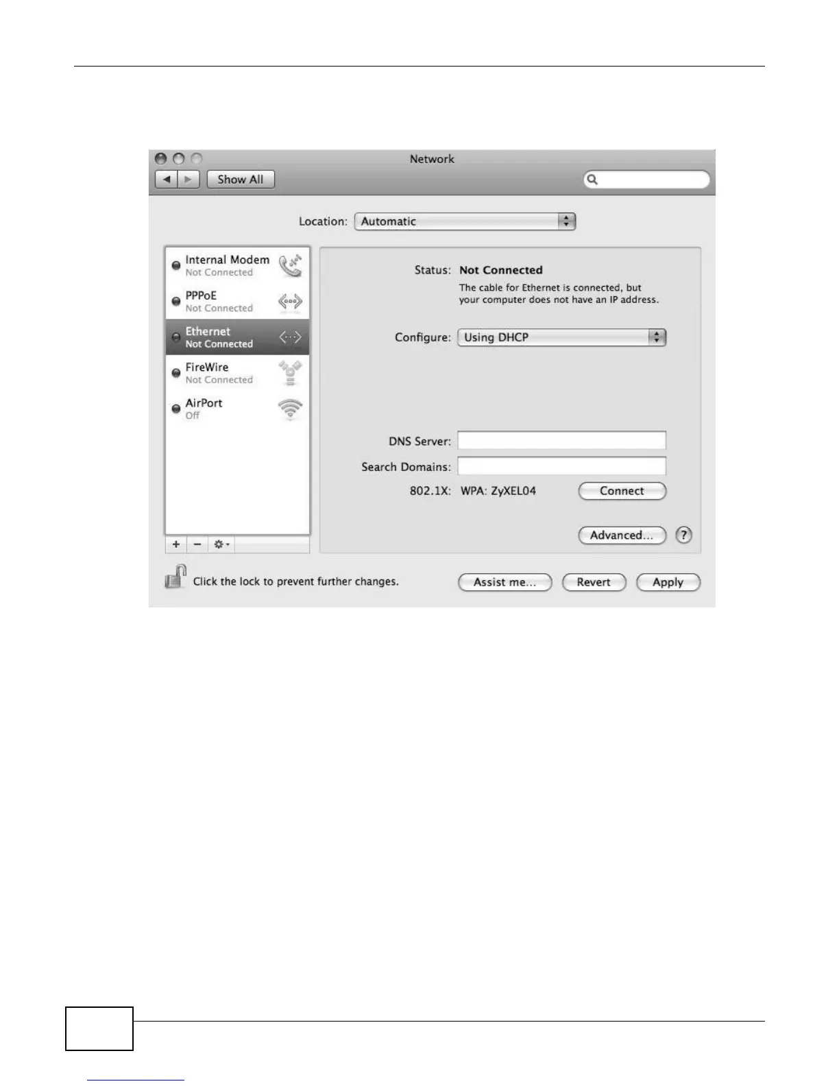 Figure 134 Mac OS X 10.5: Network Preferences > Ethernet