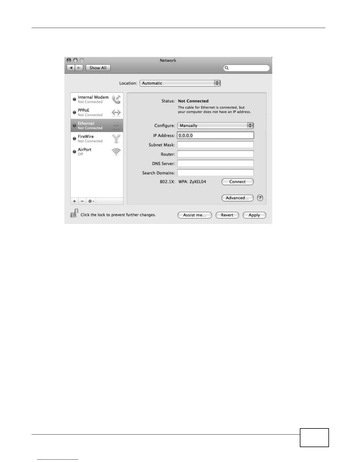 Figure 135 Mac OS X 10.5: Network Preferences > Ethernet