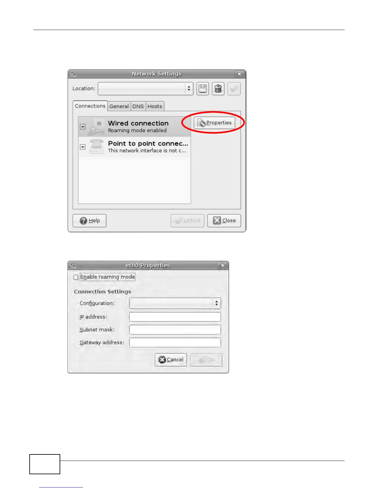 Figure 141 Ubuntu 8: Network Settings > Properties