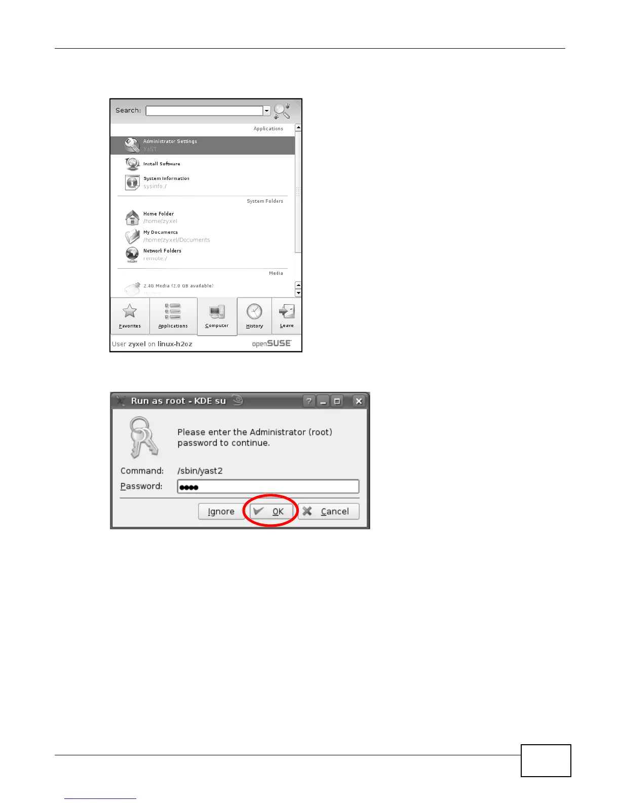 1 Click K Menu > Computer > Administrator Settings (YaST).