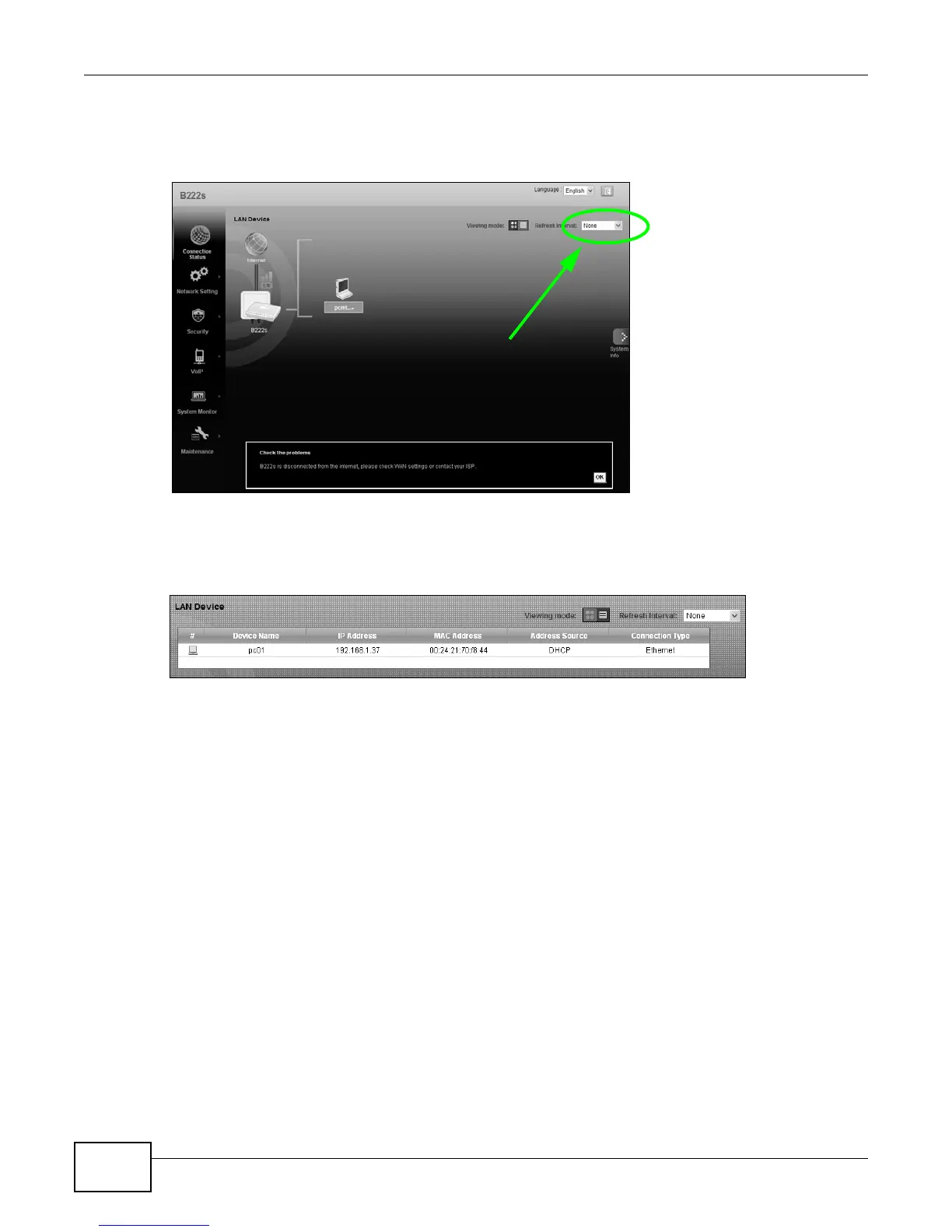 can configure how often you want the LTE Device to update this screen in Refresh Interval.