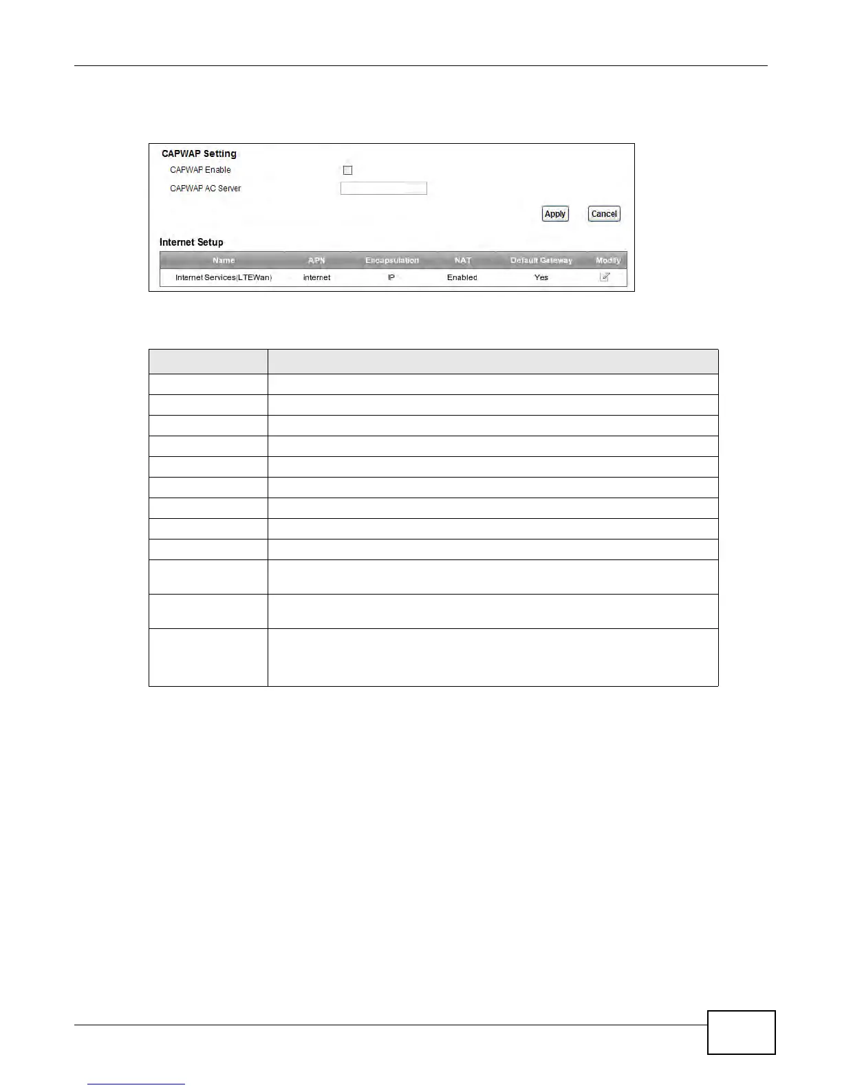 Default Gateway This shows whether the LTE Device uses the interface of this connection as the