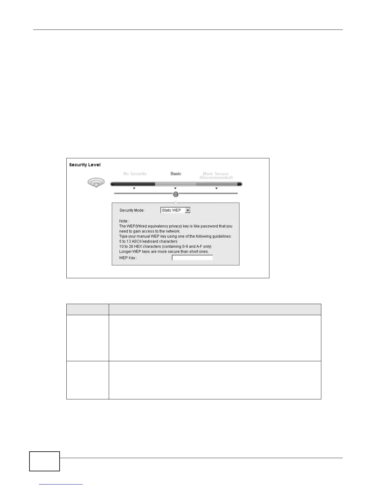 Table 9 Wireless > General: Basic (Static WEP/Shared WEP)