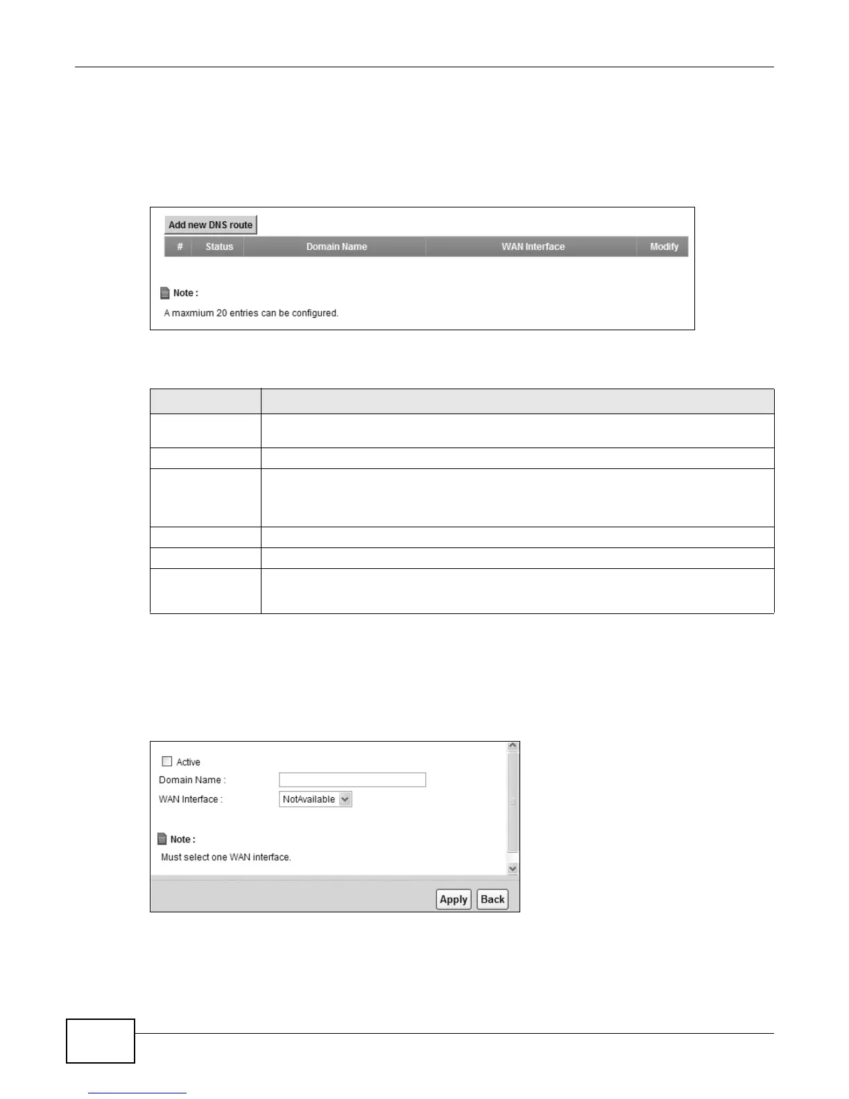 WAN Interface This is the WAN interface through which the matched DNS request is routed.