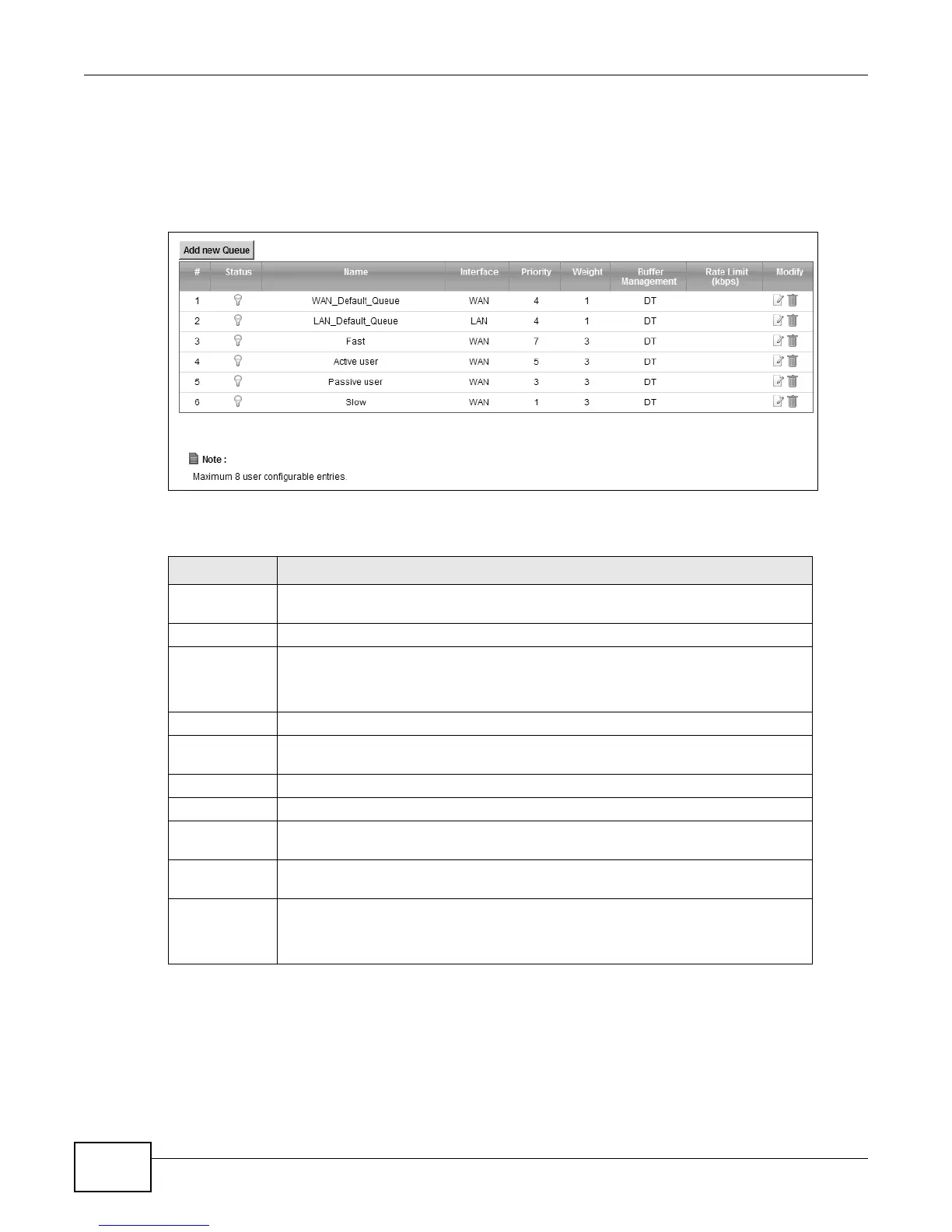 Use this screen to configure QoS queue assignment. Click Network Setting > QoS > Queue