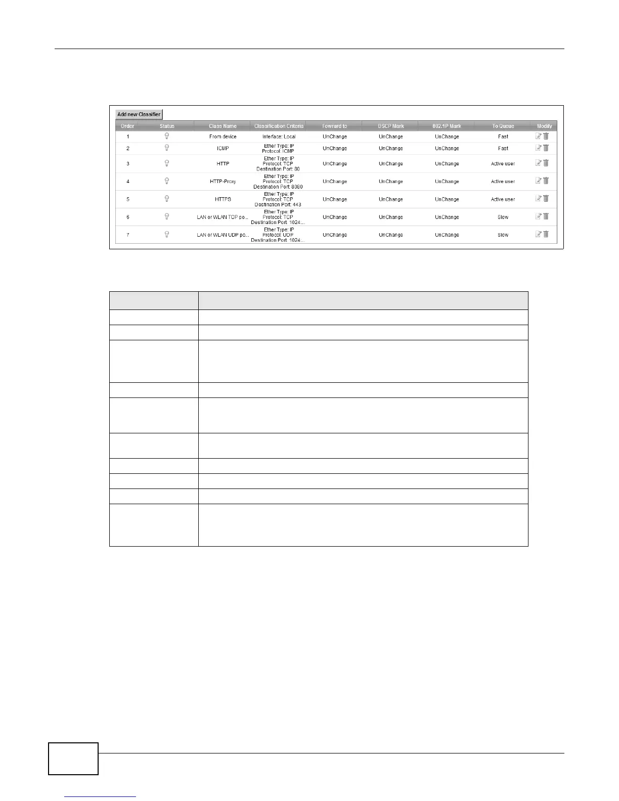 Table 30 Network Setting > QoS > Class Setup