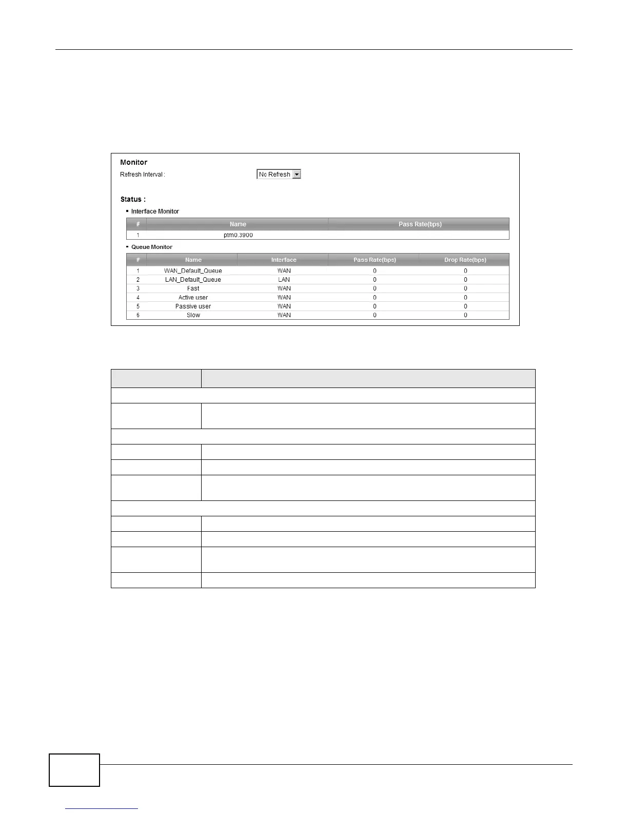 Table 32 Network Setting > QoS > Monitor