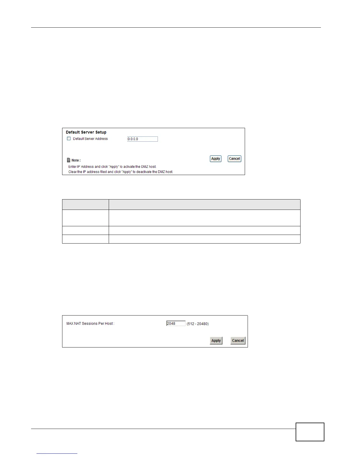 Use the Sessions screen to limit the number of concurrent NAT sessions each client can use.