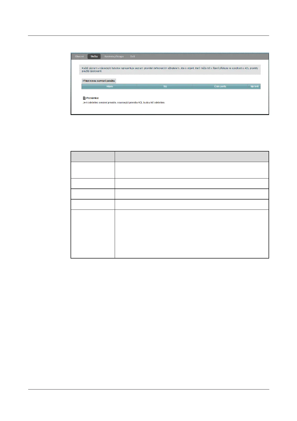 Table 10-2 Security> Firewall> Services Table 10-2 Security> Firewall> Services