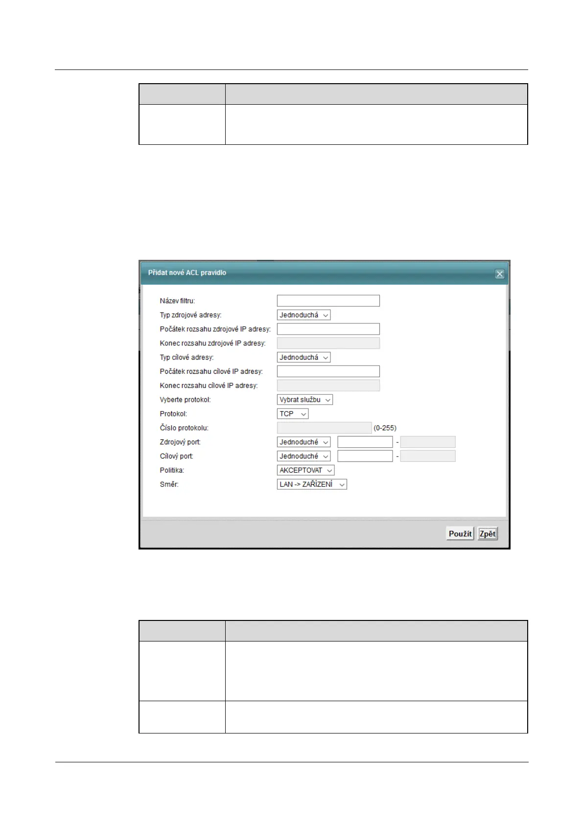 Table 10-5 Security> Firewall> Access Control> Add New / Edit ACL Rule Table 10-5 Security> Firewall> Access Control> Add New / Edit ACL Rule
