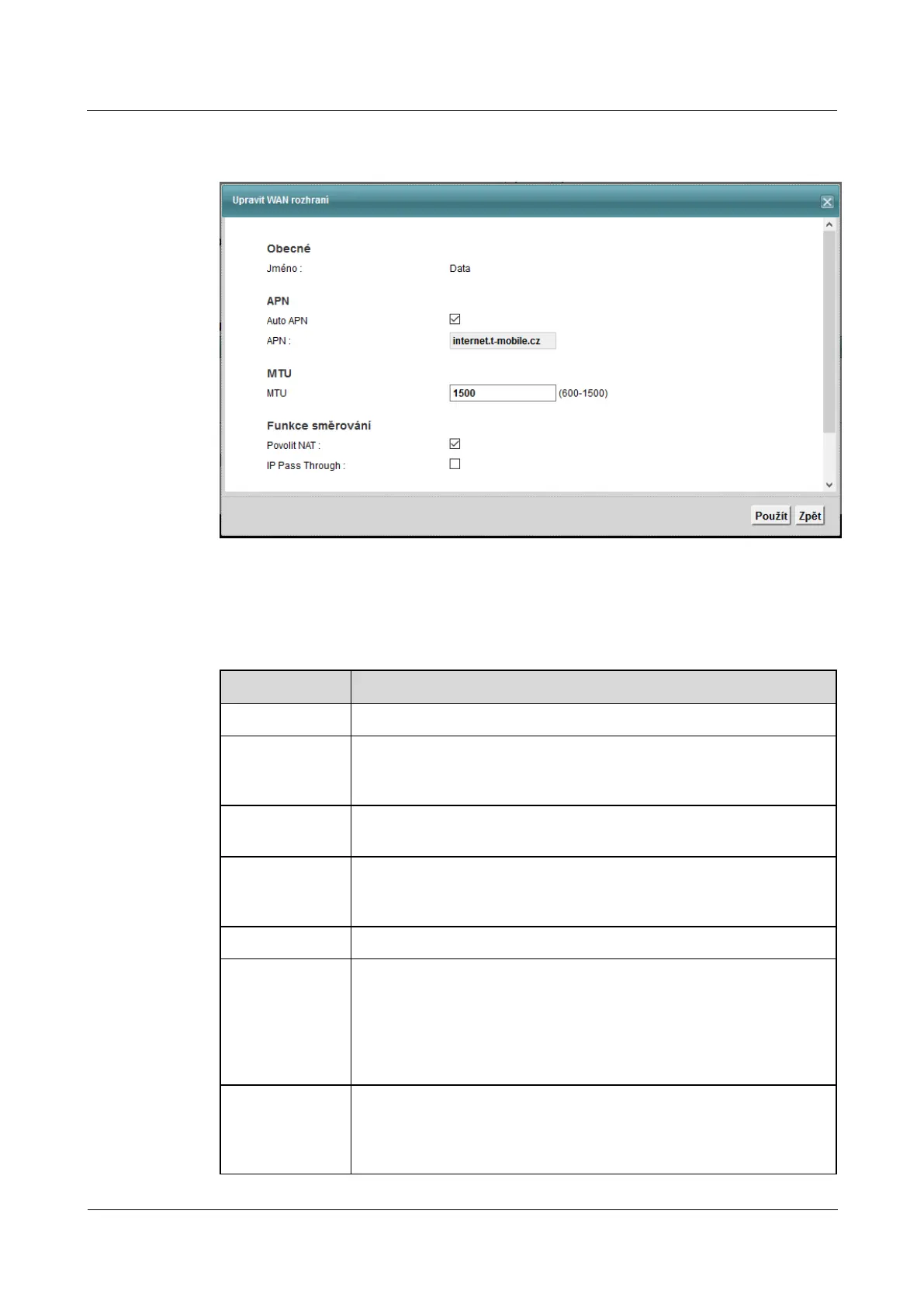 Table 4-2 Network Settings> Broadband> Broadband> Edit Table 4-2 Network Settings> Broadband> Broadband> Edit