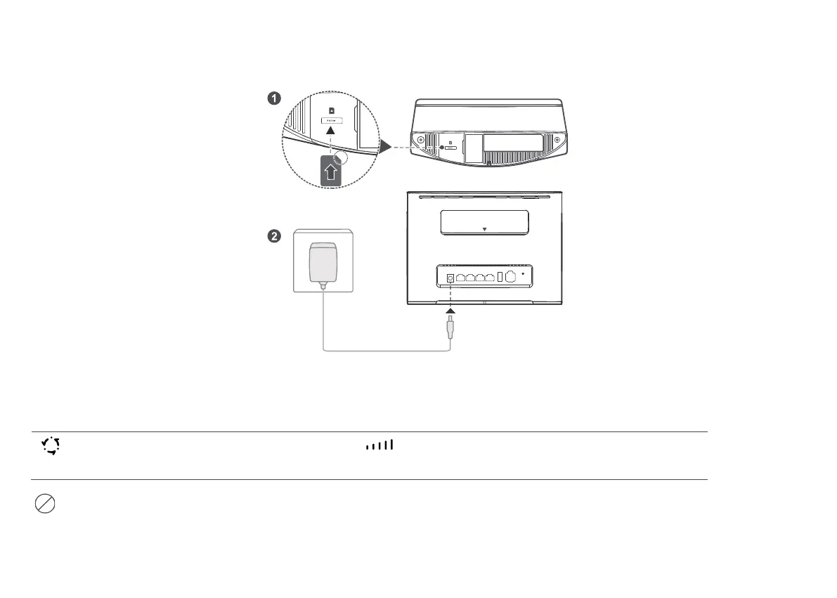 csatlakoztassa a tápegységet a B525 routerez. A router automatikusan bekapcsol, és keresi az elérhető mobil