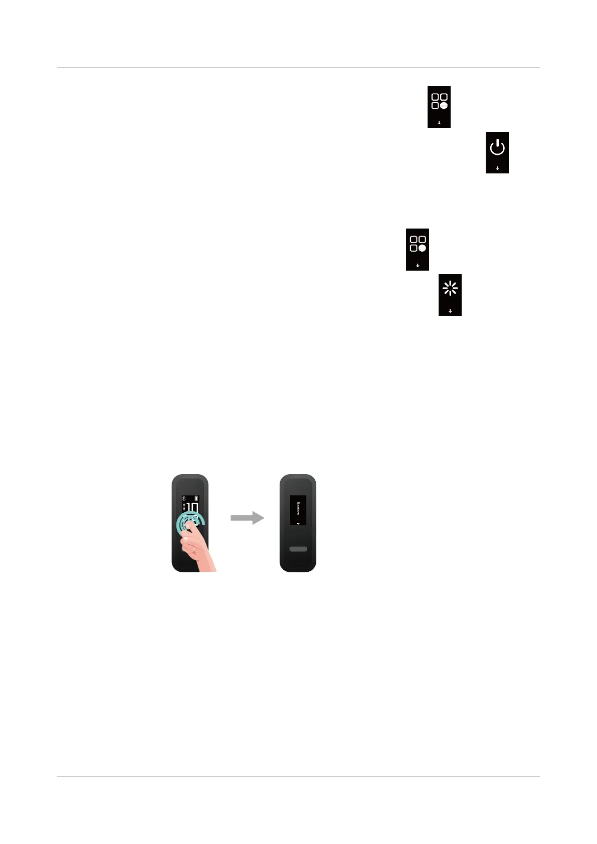 until you find the Restore screen, then hold and touch the touch key to restore the band to its